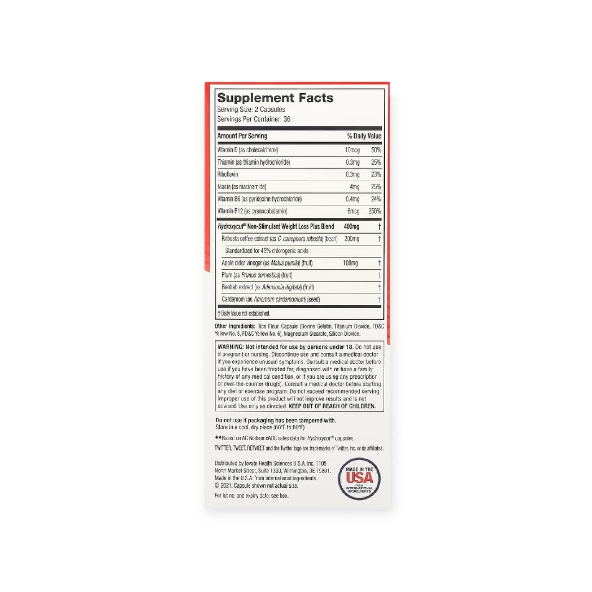 Take two (2) capsules with a glass of water two (2) times daily, approximately 30 to 60 minutes before your 2 main meals. Do not exceed two (2) capsules in a 4-hour period and/or four (4) capsules in a 24-hour period. For best results, use Hydroxycut® for 60 days in conjunction with a calorie-reduced diet and regular exercise program. Consume 8-10 glasses of water per day. Read the entire label before use and follow directions.