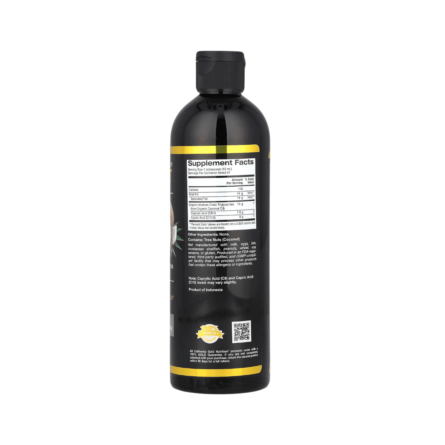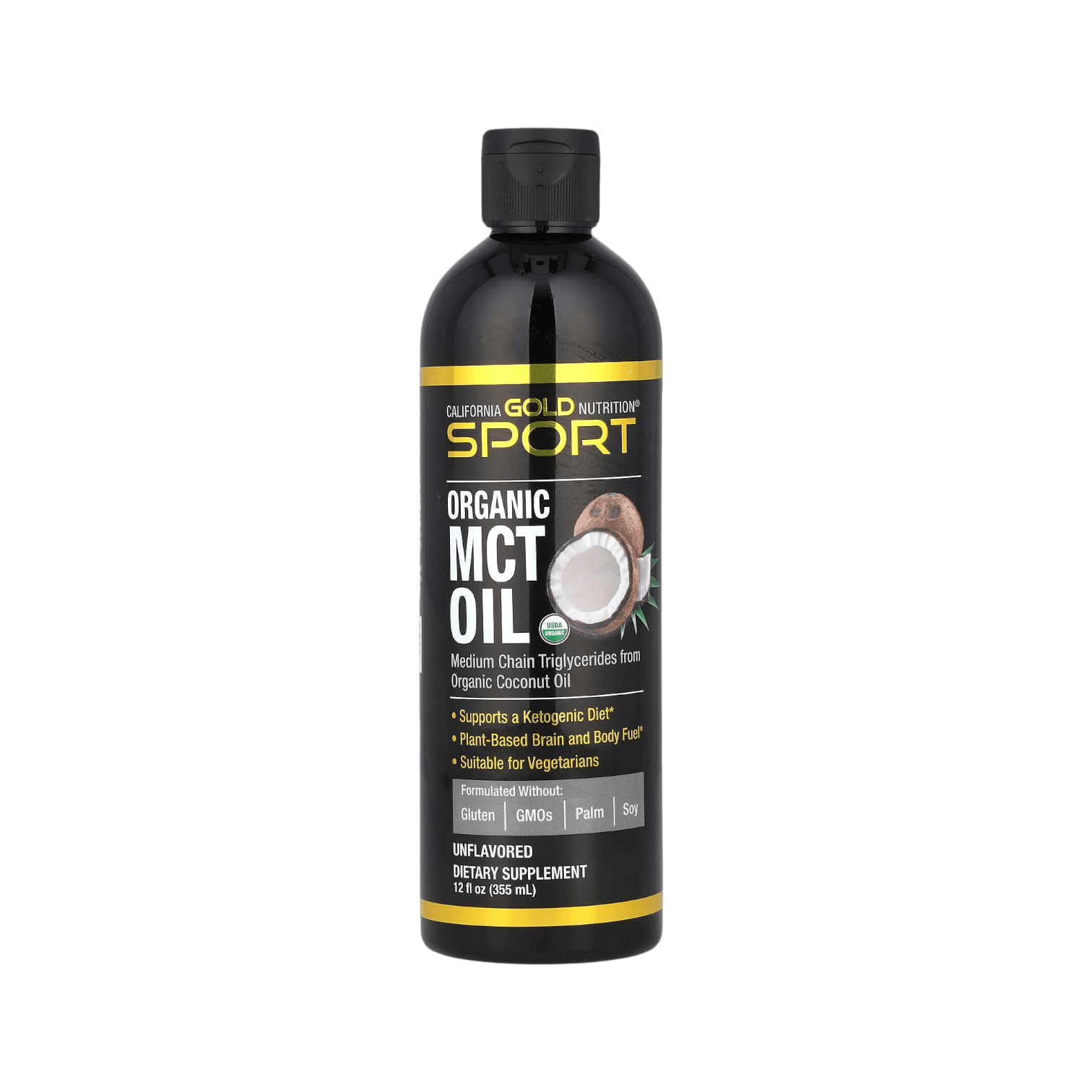 California Gold Nutrition Sport® Organic MCT Oil contains multiple MCTs from organic coconut oil, including caprylic and capric acid. It contains no gluten, GMOS, palm, or soy.