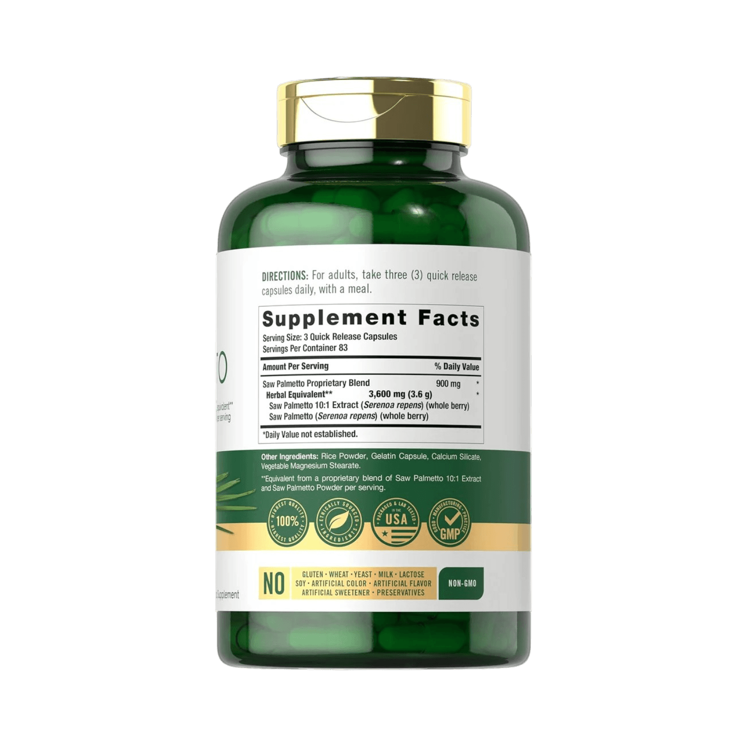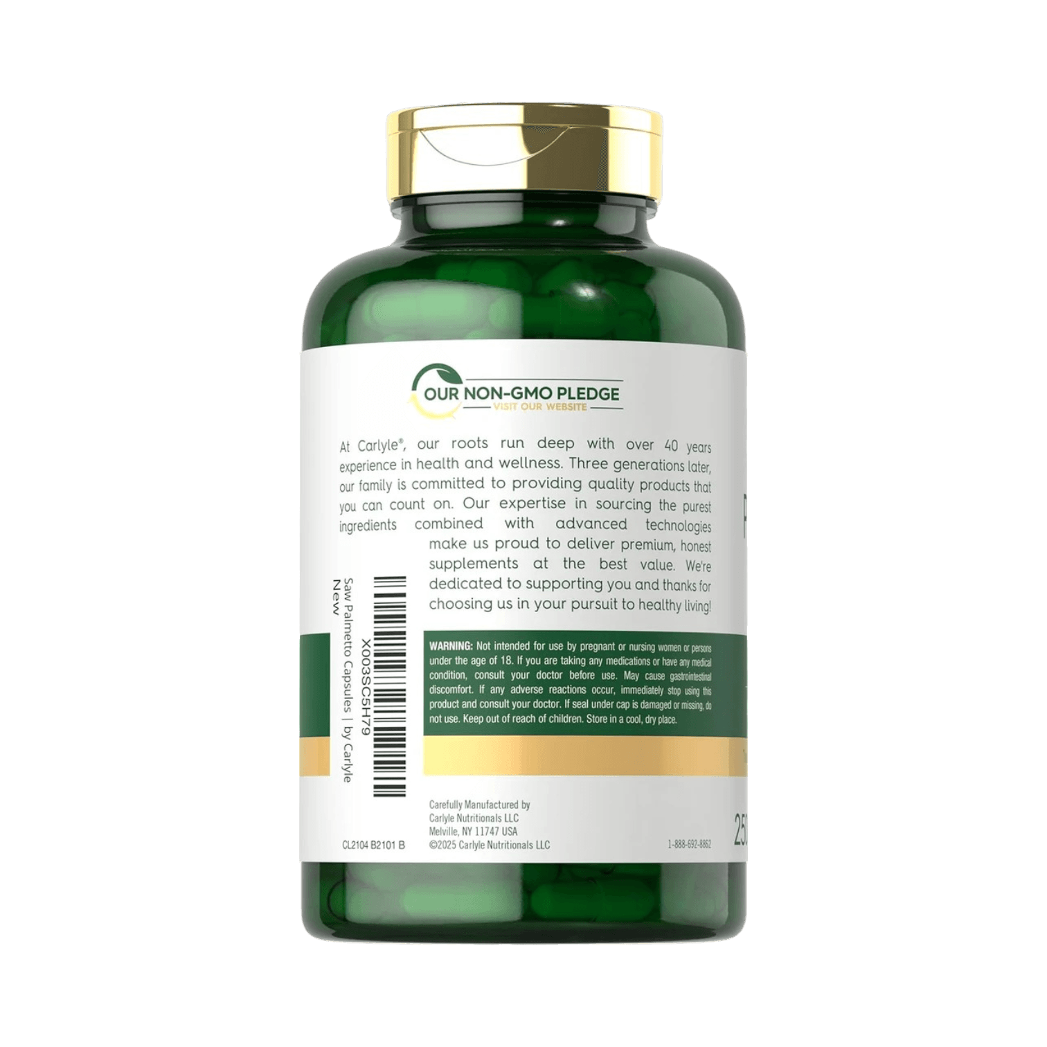 Experience the benefits of this traditional herb with Carlyle Saw Palmetto. Our expertly crafted formula features a proprietary blend in convenient quick-release capsules. Non-GMO and gluten-free, this supplement is made without artificial flavors, sweeteners, or preservatives—making it a high-quality addition to any daily vitamin and supplement routine.