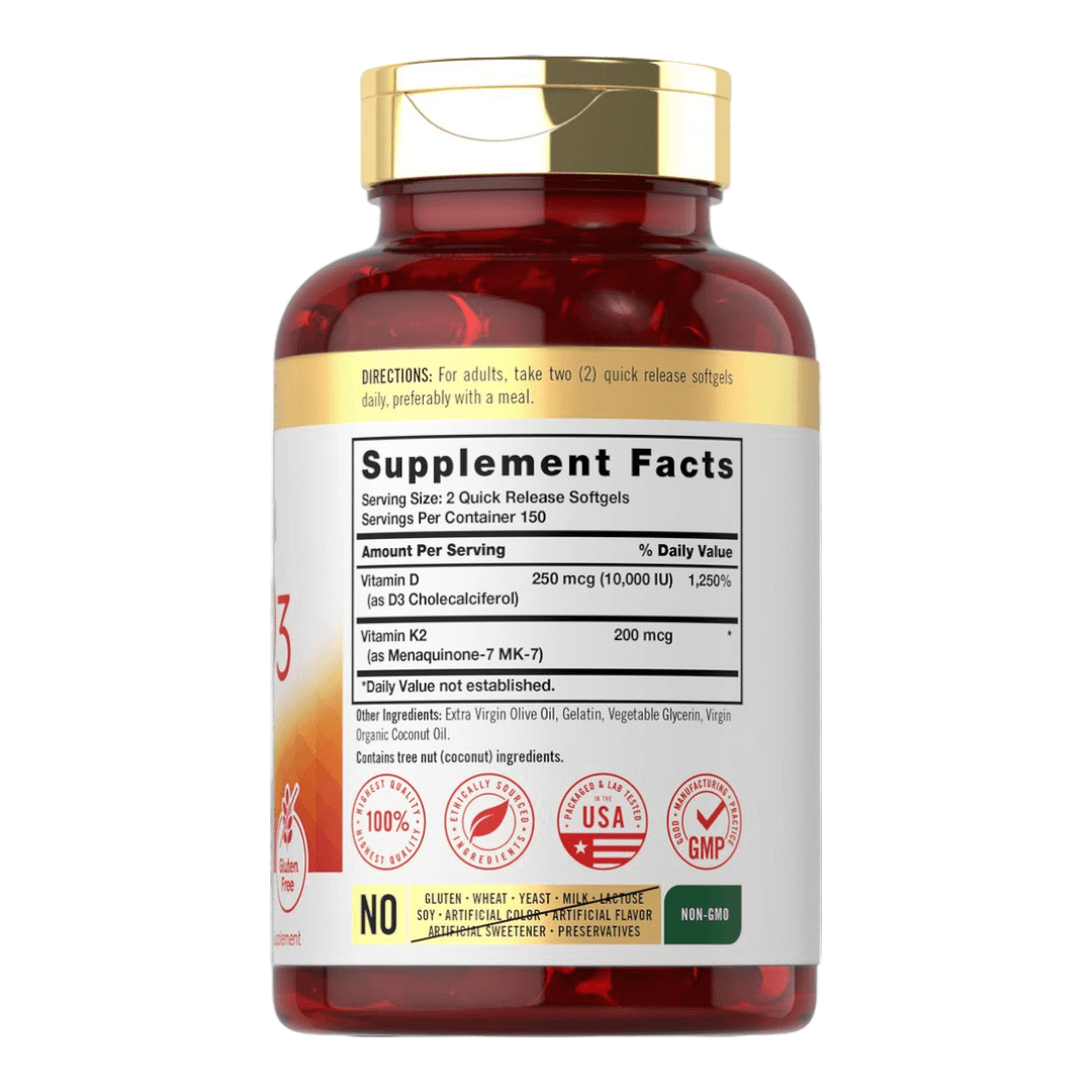 VITAMIN K2 + D3: Receive these two essential nutrients in convenient quick release softgels!