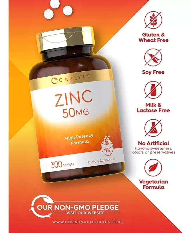 Carlyle Zinc Tablets is the best way to get a high dose of this essential mineral. Our premium formula delivers 50 mg of Zinc (as Zinc Gluconate) per serving. That’s 455% of your daily value! We’re committed to honest nutrition, which is why our formula is made gluten-free and non-GMO, because you deserve the best for your healthy lifestyle!