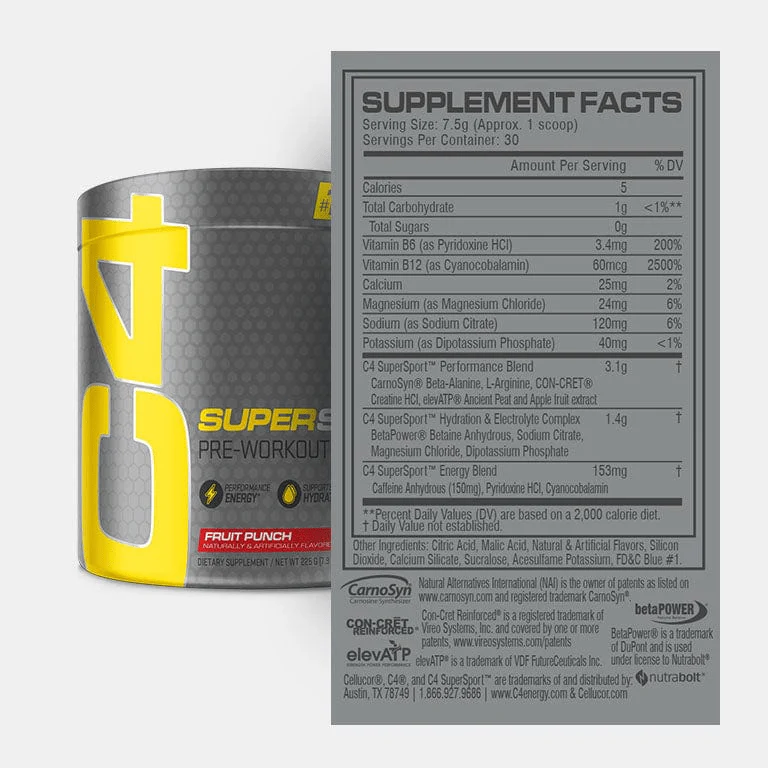 C4 SuperSport™ Pre-workout is supercharged to help drive your performance. With ingredients to support energy, hydration, and increased strength and power, C4 SuperSport™ helps you reach your goals – wherever they take you!