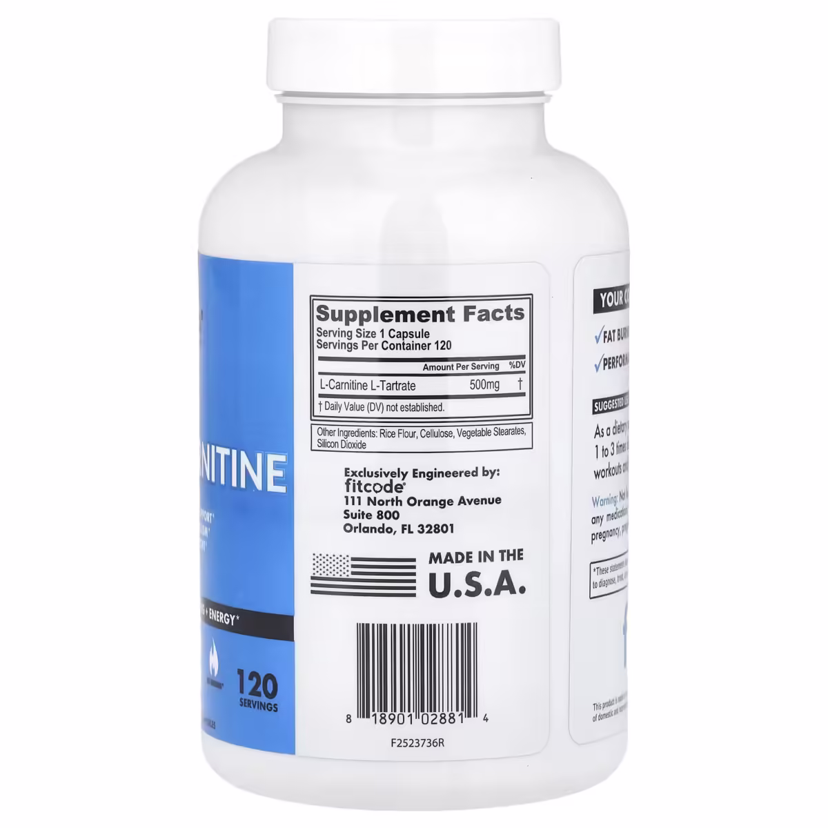As a dietary supplement, take 1 capsule of fitcode® L-Carnitine 1 to 3 times daily. Consume between meals, 30-45 minutes before workouts and/or immediately after workouts.