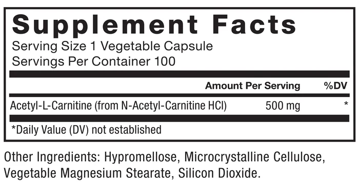 Acetyl-L-CarnitineA highly bioavailable form of L-carnitine, acetyl-L-carnitine is scientifically studied for its ability to support healthy brain and nerve function, and helps turns fatty acids into fuel.