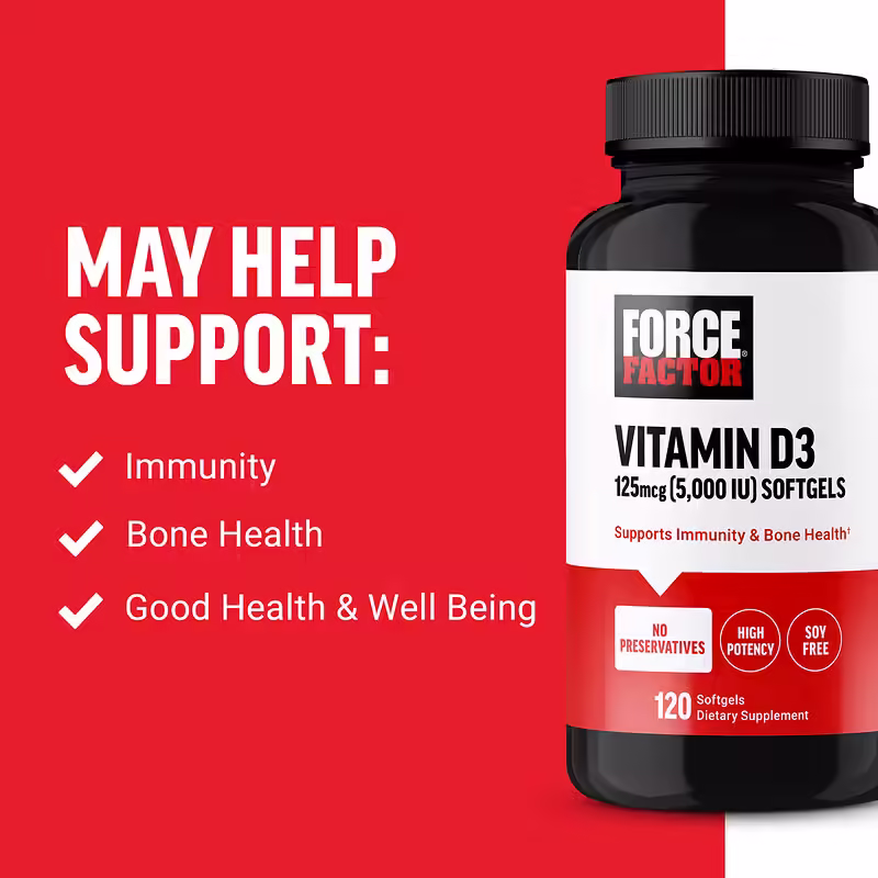 Force Factor Vitamin D3 125 mcg (5,000 IU)