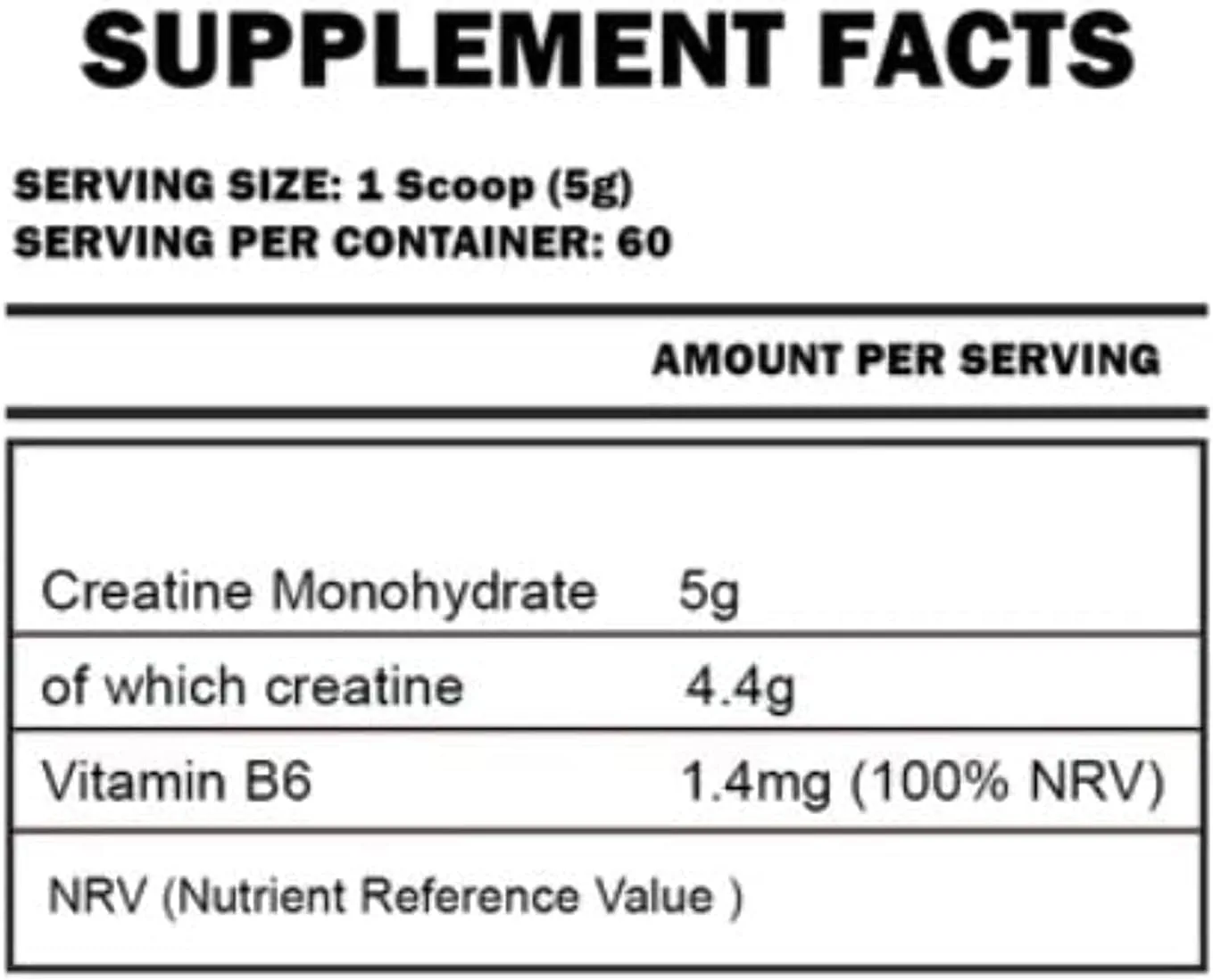 Ingredients: Creatine monohydrate, vitamin B6 (pyridoxine hydrochloride).