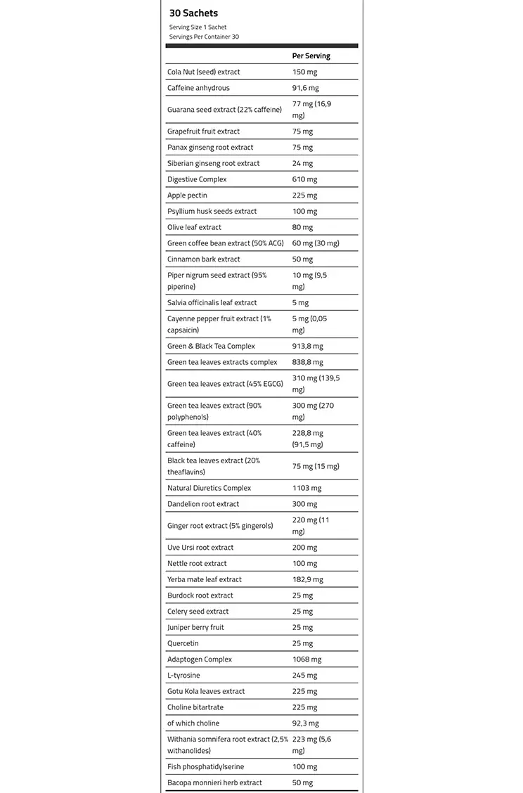 - A Generous Portion of Caffeine (Including Some From Standardized Extracts of Green Tea Leaves and Guarana Seeds) Helps Increase Energy Levels and Reduces Signs of Fatigue,