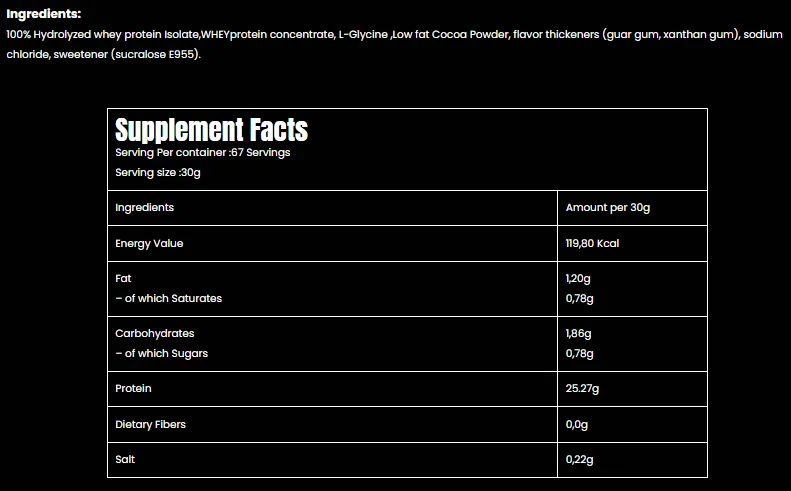 Hydro was made to provide High quality bioavailable protein that’s easily absorbed. Hydro contains naturally occurred EAA (including BCAA), L Glutamine and all the amino acids. Hydro contains low Fat and without any added sugars.