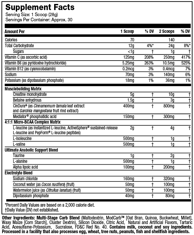 The only formula to feature the new and exclusive ingredient matrix CinDura®. CinDura® is believed to help optimize energy production (ATP) through the mitochondria and combat muscle breakdown through inhibition of the proteasome pathway, facilitating greater strength, endurance and lean muscle.