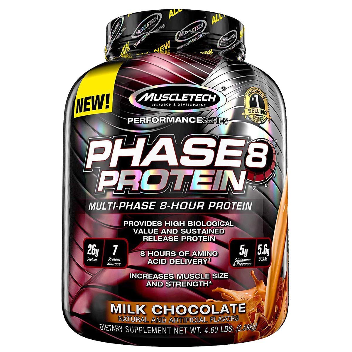PHASE8 is a superior blended protein formula that feeds your muscles for 8 hours. Each scoop of Muscletech Phase 8 contains an impressive 26-gram blend of milk-derived proteins that supplies a sustained-release of amino acids. PHASE8 has a premium, clean macronutrient profile with only half the carbs and fat of the other leading competitors.