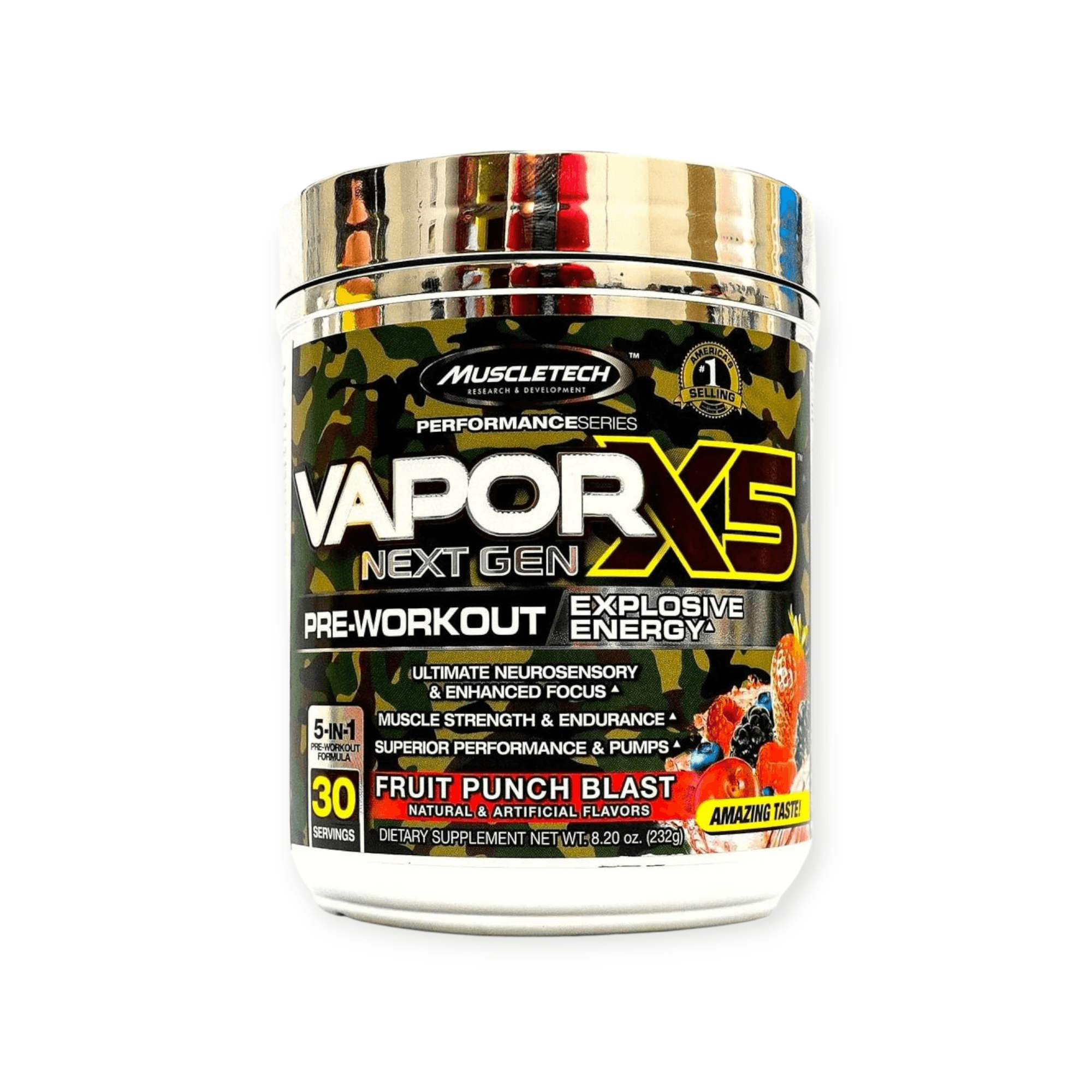 VaporX5™ Next Gen has everything you want to get amped up for a killer workout. A precisely dosed neurotransmitter precursor is combined with a potent amount of caffeine that will fire up your energy, help power you through your hardest training sessions and enhance your focus.