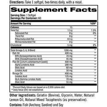 Natrol Omega 3-6-9 Complex provides a potent blend of Omega 3, Omega 6 and Omega 9 complex fatty acids needed for metabolic regulation and structural support.