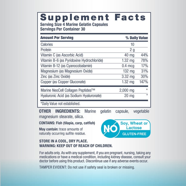 At NeoCell®, we prioritize premium quality collagen in every formula. Our Marine Collagen Peptides™ deliver 2,000 mg of collagen per serving, sourced from fish like tilapia, carp, and catfish. Marine collagen is known to be smaller in size as well, making it more bioavailable so your body can better absorb it.