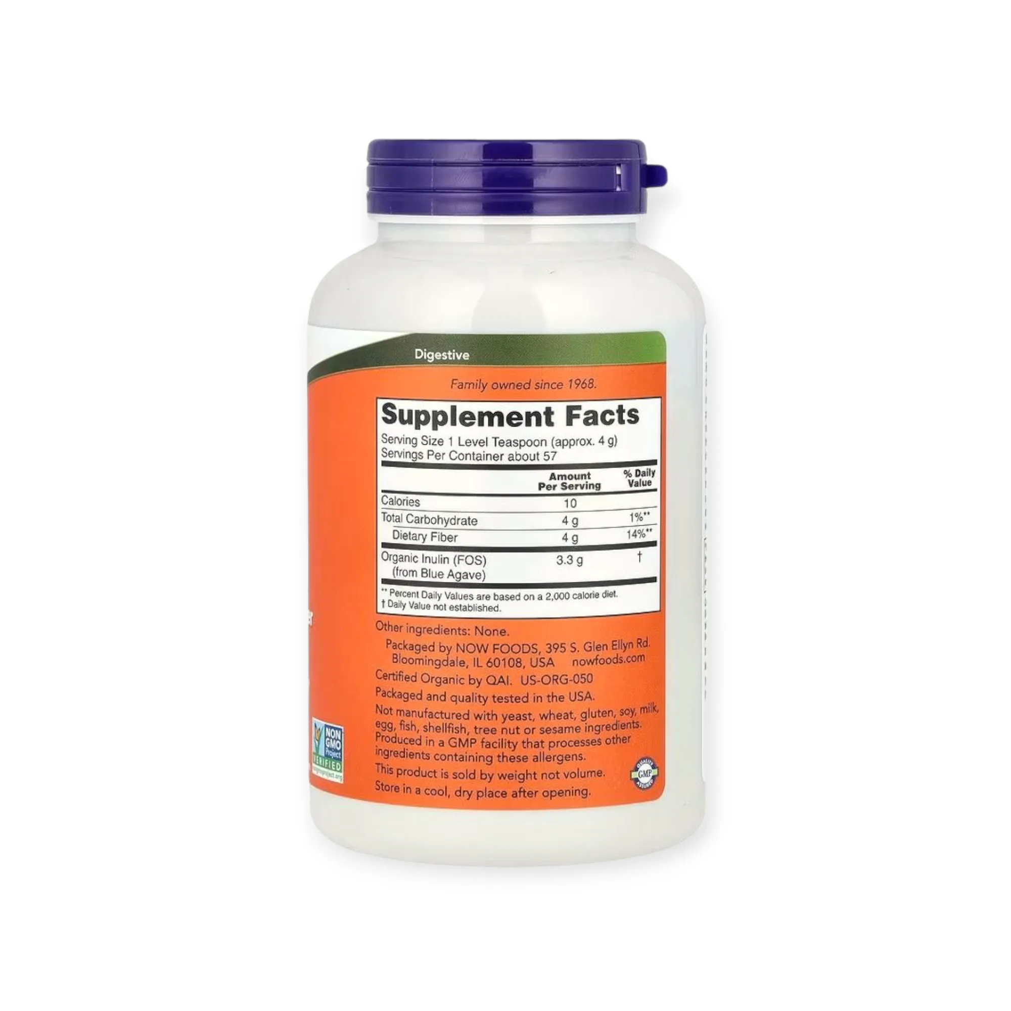 NOW Foods Certified Organic Inulin Prebiotic Pure Powder 8 oz (227 g)
