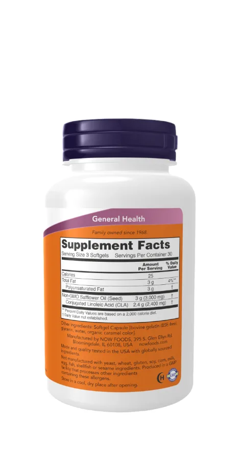 CLA (Conjugated Linoleic Acid) is a class of fatty acids produced by animals that is naturally found in beef and dairy products. Although CLA plays an important role in a number of cellular metabolic processes, humans are not able to produce CLA and therefore can only obtain it from the diet.* Since CLA is generally more abundant in grazing animals, changes in agricultural practices have resulted in less CLA in our foods, decreasing its availability in modern diets. Therefore, using a CLA supplement is recommended to obtain desirable levels of CLA for its optimal effects.* NOW® CLA is derived from non-GMO safflower oil and delivers 800 mg CLA per softgel.