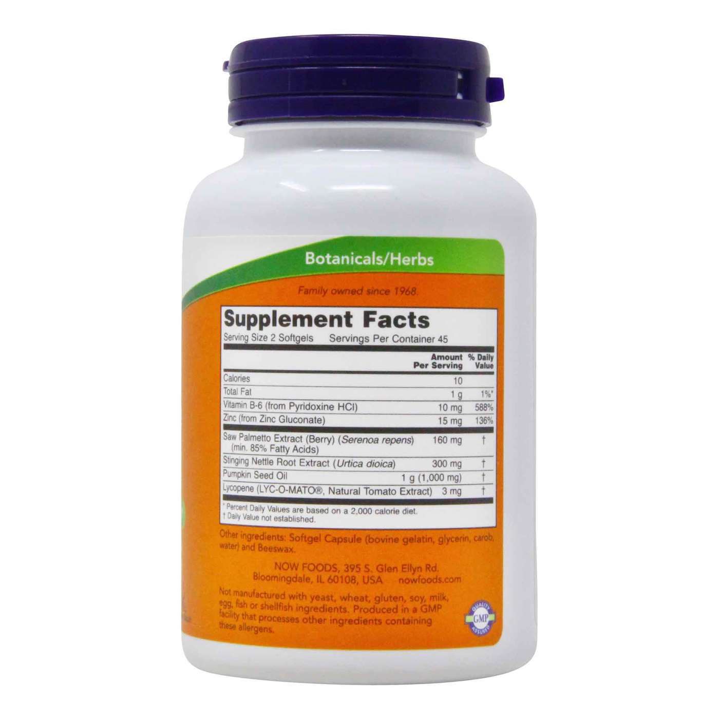 NOW® Prostate Support is a blend of standardized extracts of herbs and nutrients. Saw Palmetto has been shown in clinical studies to support prostate function. We have provided additional nutritional support with Pumpkin Seed Oil, Zinc, Vitamin B-6 and Lycopene.