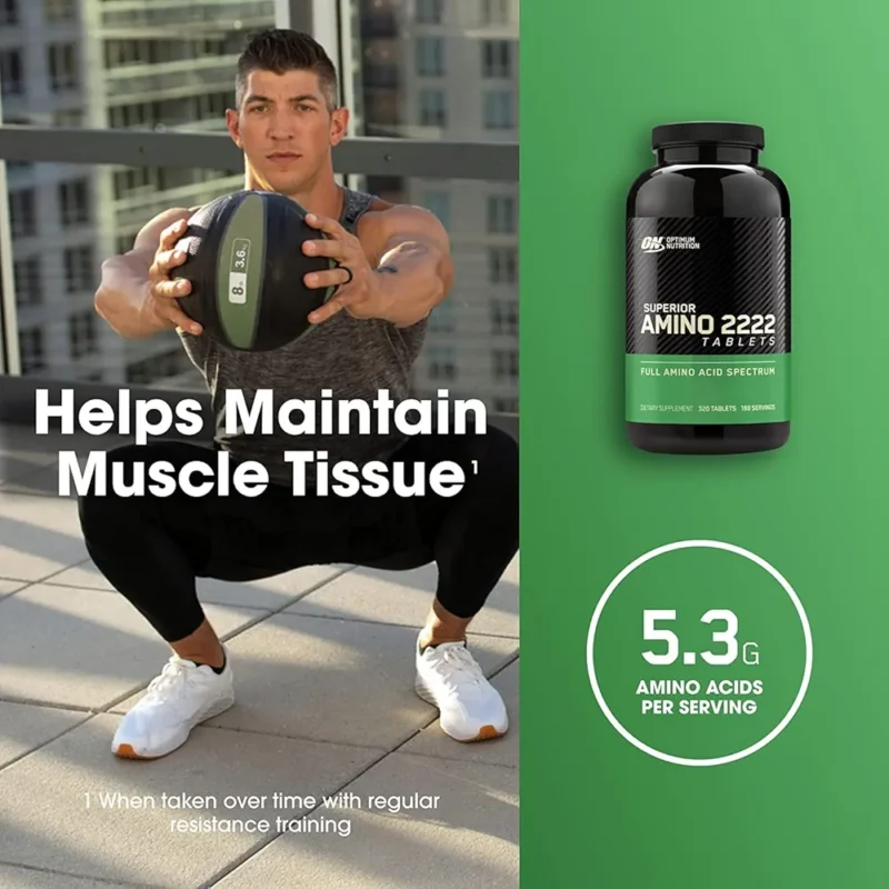 ON’s Superior Amino 2222 Tabs provide 2.2 grams of 18 different amino acids to add to the amount you take in through protein shakes, protein bars and whole foods. Used in conjunction with a well-planned diet that includes ‘complete’ proteins, these tablets can play a role in supporting muscle recovery from exercise. Because we used micronized aminos, they can get into your system that much quicker.