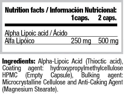 - 500mg Alpha Lipoic Acid per serving (2 capsules) : High concentration to maximize antioxidant effects.