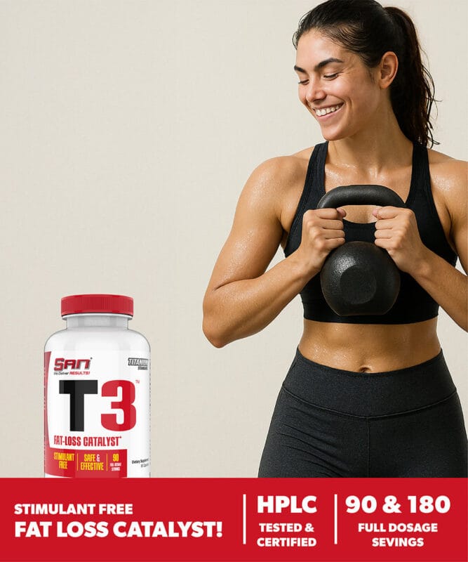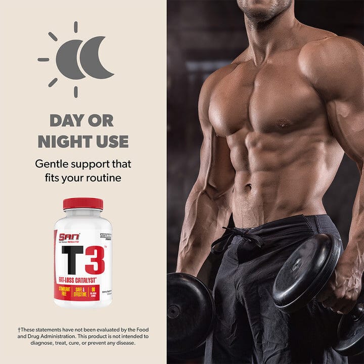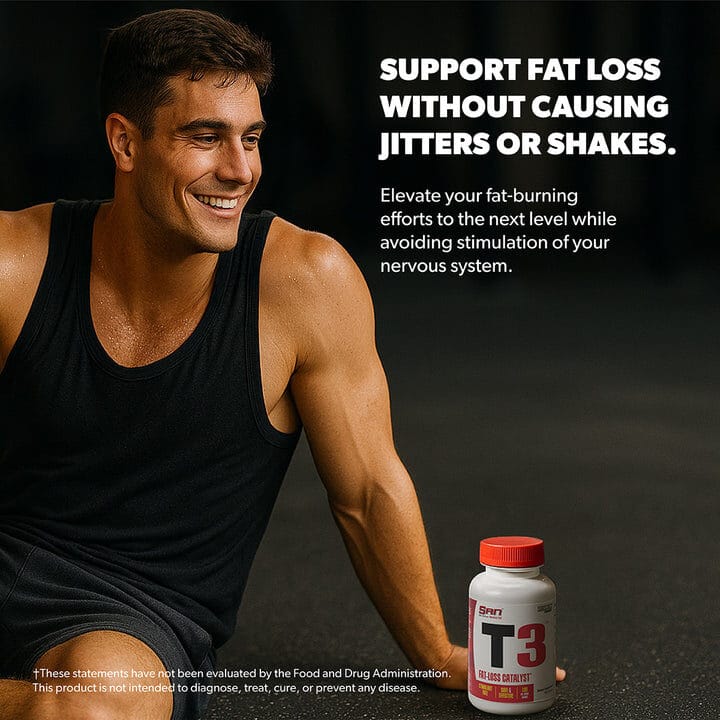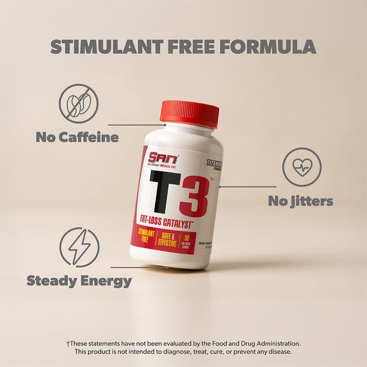That’s why SAN developed T3 Stimulant Free Fat Loss, a clean formula designed to work with your system instead of against it. Made with 99.9% pure guggulsterones, T3 provides natural thyroid and metabolism support without relying on stimulants. With its gentle, caffeine free design, this supplement is ideal for anyone seeking steady energy and balanced fat loss support as part of a healthy lifestyle.