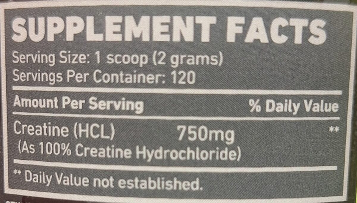 HYDRO CREATINE HCL is a soluble form of Creatine, so you get the benefit creatine without the bloating. Build muscle, increase strength, and imprave recovery between sets, so you can get that extra rèp.”