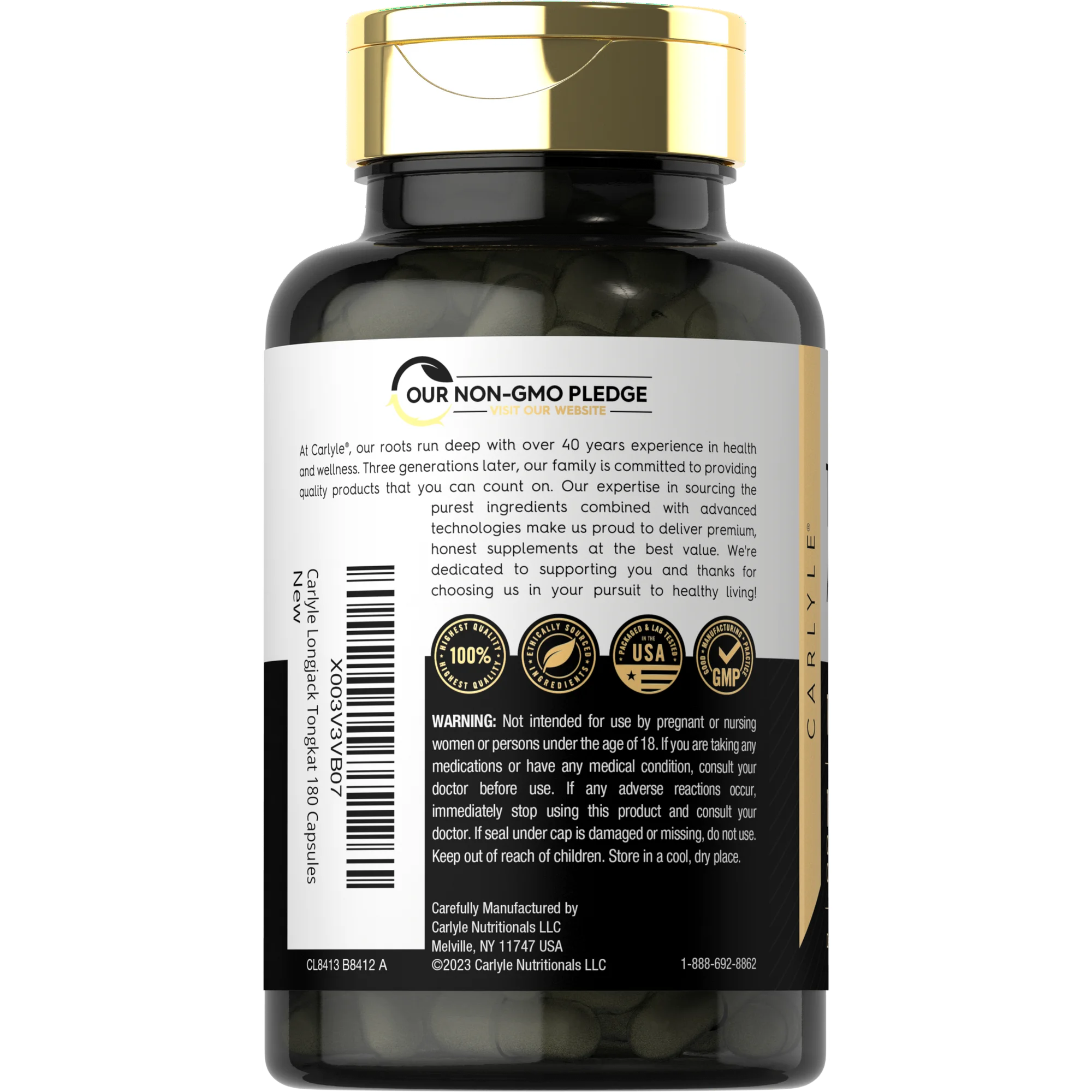 Carlyle’s Tongkat Ali is a powerful form of this exotic herb, featuring the equivalent of 1,600 mg of Longjack Root per serving in quick release capsules. Our formula is gluten free and non-GMO, made with with no artificial flavor, color, sweetener, or preservatives, making it the perfect addition to any routine!
