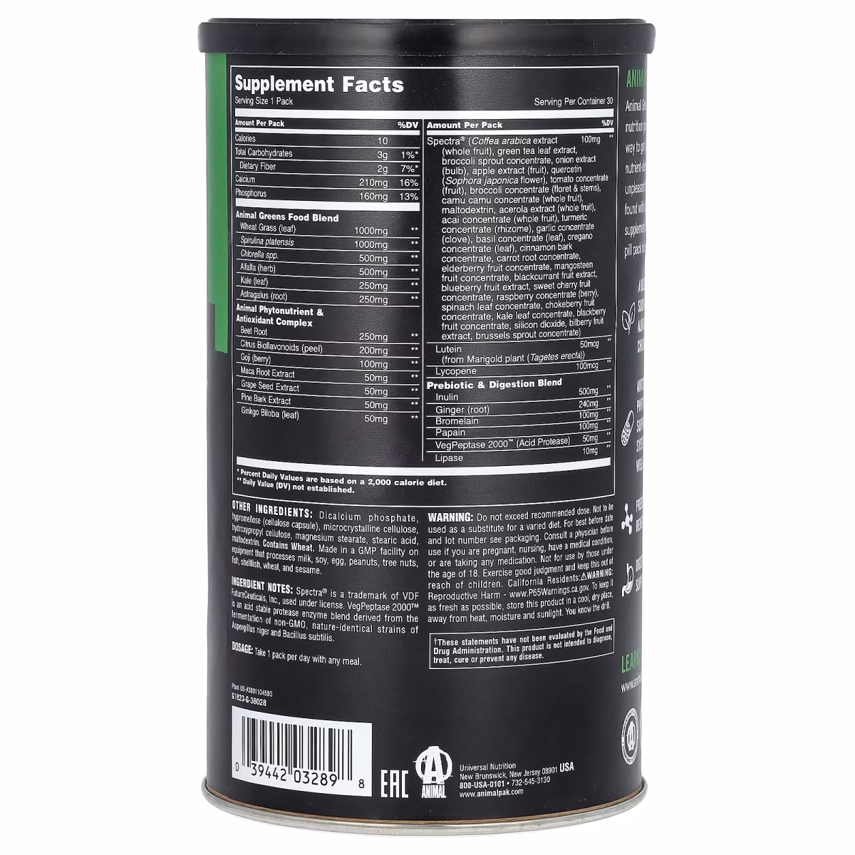 Animal Greens is packed with superfoods and antioxidants, providing a comprehensive, finely-tuned, and balanced greens nutrition powerhouse. This formula delivers natural compounds found in superfoods like kale, wheatgrass, alfalfa, spirulina, chlorella, and more.