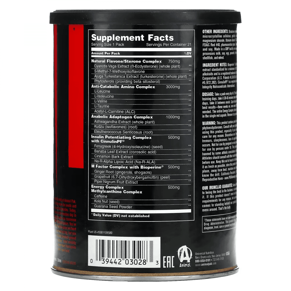 Directions For Animal Stak: Take a single pack daily for 21 straight days. On training days, take it 30-45 minutes before lifting. On nontraining days, take it prior to bed. For best results, “cycle” this product following a schedule of three weeks on and one week off. Best results if used by those who are 25 years or older. However, due to its ability to help modulate free test levels, it could benefit others as well. Consider “stacking” Animal Stak with either Animal Test or Animal M-Stak for even greater gains.