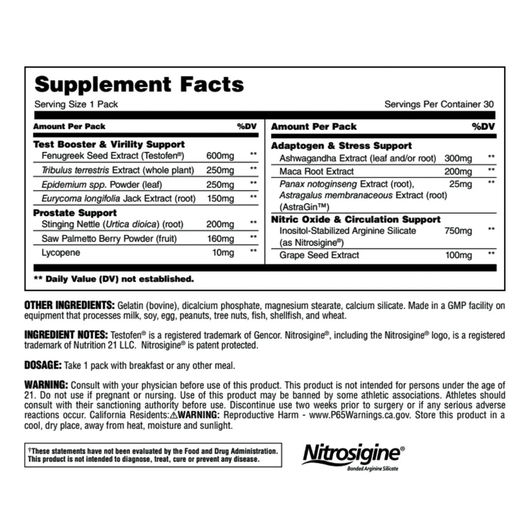 TNT+ boosts free testosterone levels, helps build muscle mass, and supports cardiovascular function. This scientifically designed formula combines trademarked and researched ingredients like Testofen® and Nitrosigine®, with the powerhouse adaptogen Ashwagandha, along with super herbs like Saw Palmetto, Maca, Tribulus, Horny Goat Weed and more.