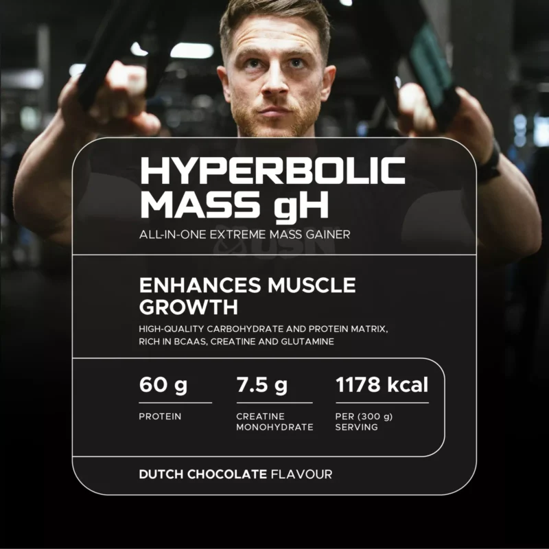 Support your mass gain goals with Hyperbolic Mass. It’s an all-in-one mass gainer, designed for individuals with a fast metabolism that provides a high-quality carbohydrate and protein matrix, rich in BCAAs, creatine and glutamine.