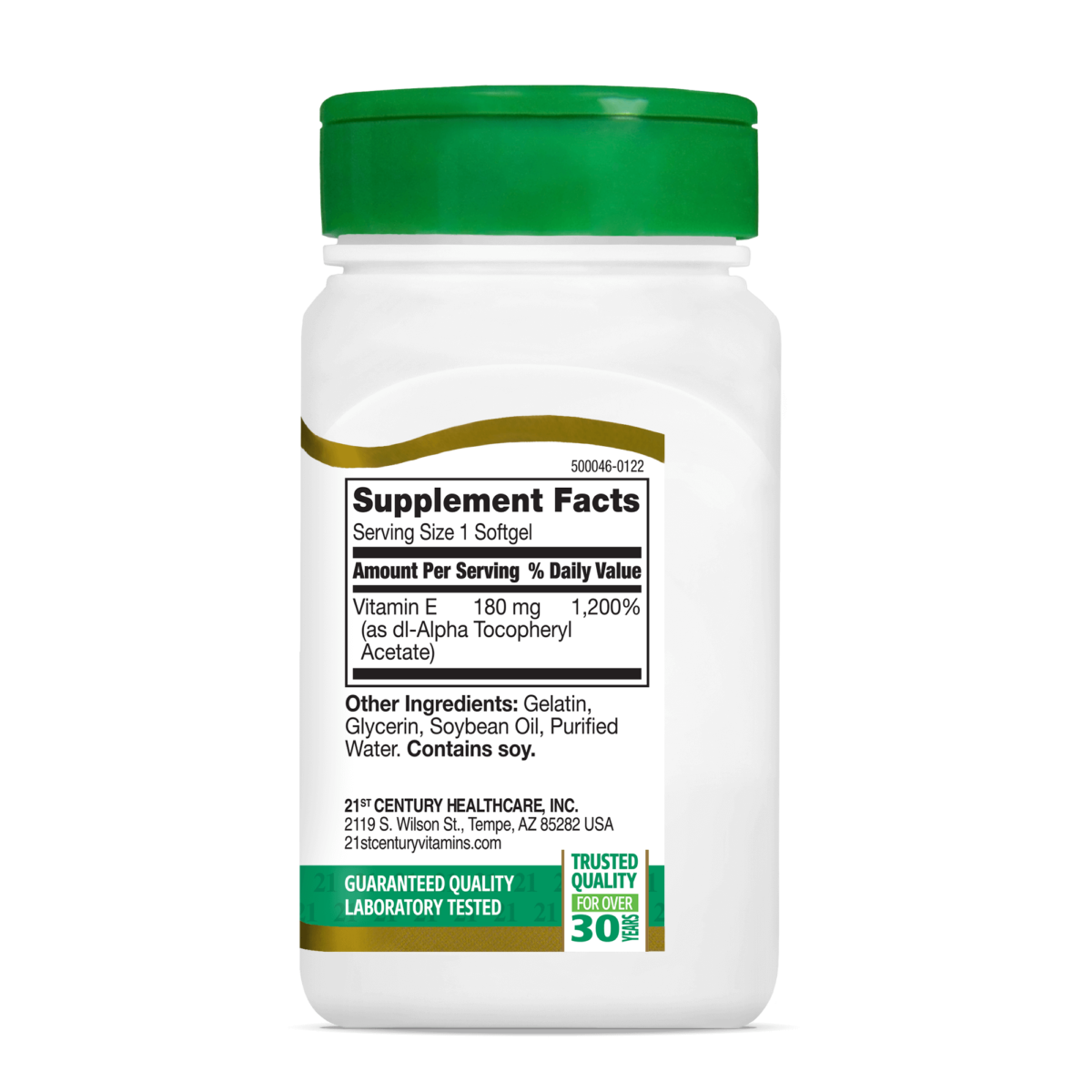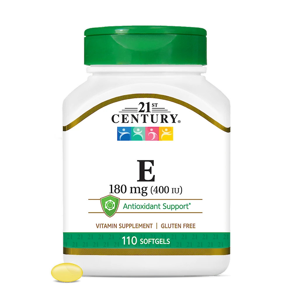 21ST Century Vitamin E supplements offer a convenient way to support your intake of this important antioxidant, which is naturally found in foods such as sunflower seeds, almonds, peanuts, vegetable oils, and leafy green vegetables.