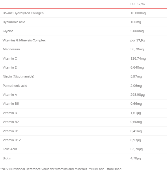 In addition, Collagen Plus® contains hyaluronic acid, an essential component to keep the skin elastic and hydrated and to improve the lubrication of the joints. It also contains glycine, which improves internal collagen production; magnesium, which reduces muscle cramps, improves calcium absorption, collagen formation and helps maintain ligaments; in addition to a complete complex of vitamins that improves all organic functions.