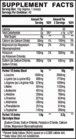 • XTEND® Perfect 10 Amino contains a blend of critical electrolytes – Sodium Citrate, Sodium Chloride, Potassium Chloride, Calcium Citrate, Magnesium Glycerophosphate – engineered together to match the approximate rate and ratio of key minerals lost in sweat during high-intensity training.