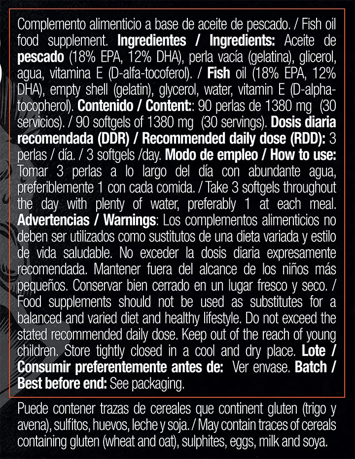 It contains **540mg of EPA** which offers positive impacts on **lipid regulation**, controls **inflammatory processes**, and reduces oxidative stress. Additionally, it helps prevent platelet aggregation, improves the health of cell membranes, vascular and coronary function, and **strengthens the immune system** in both its innate and adaptive forms.